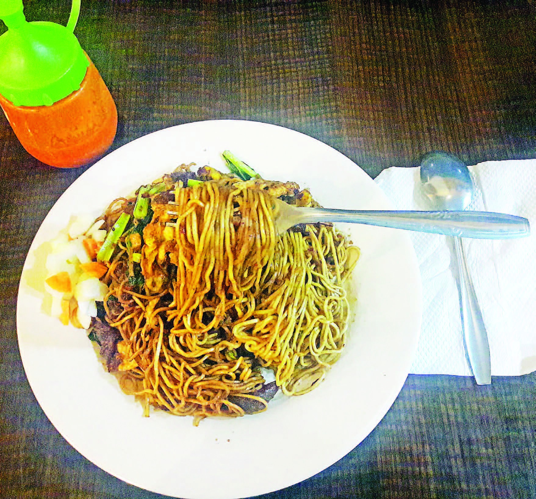Perpaduan Mie 'ojo' atau mie basah di sajikan dengan dua rasa, ayam dan Cakalang. Rasa cakalang dan ayam sangat dominan, mi juga lembut, dan bumbu racikan untuk mengolah mi goreng menjadikan rasanya sangat nikmat. (tribunmanado)