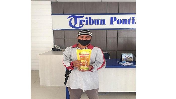 Gusriyanto saat menerima bingkisan lebaran dari Tribun Pontianak bertempat di Kantor Tribun Pontianak pada Senin (18/05/2020) siang. --