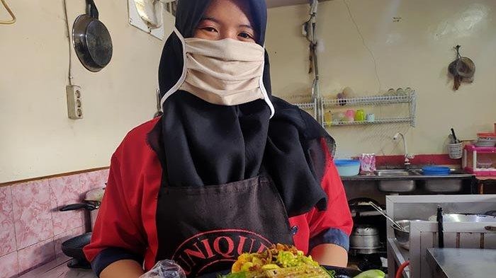 Koki Unique Yokk, yakni Nur, dengan Nasbak Seafood yang baru selesai dimasak, Kamis (11/6/2020)