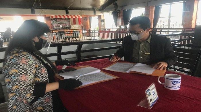 GM Hotel Transera Pontianak Udik Setiadi, menandatangani perpanjangan kerjasama TFC premium bersama GM Business Tribun Pontianak, Senin 29 November 2021.