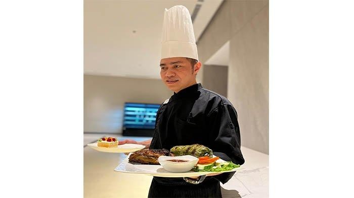 Chef Hotel Golden Tulip Petrus Daryanto yang sedang menyajikan menu spesial promo bulan Juli-September.