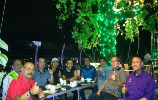 Sejumlah anggota Kerukunan Keluarga Turatea (KKT) Jeneponto, menikmati sore dan malam di Sky Lounge Carebosi Condotel, Sabtu (23/4/2016).