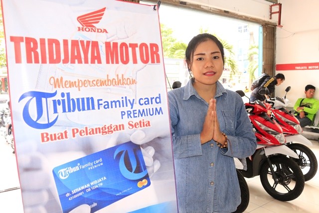 Bagi Anda yang membeli sepeda motor di Tridjaya Motor juga bisa mendapatkan Tribun Family Card (TFC) Premium. "Ada berbagai macam diskon dan fasilitas yang dapat digunakan dengan kartu ini. Fasilitasnya seharga Rp 4,2 juta," ujar Viviane Rattu, Marketing Support. Selain itu kata Vivi, dengan kartu ini pelanggan juga bisa mendapatkan koran Tribun Manado gratis selama lima bulan. Selain melalui pembelian sepeda motor di Tridaya, Anda juga bisa mendapatkannya langsung di kantor Tribun Manado di Jalan AA Maramis, Kairagi II. Bawa bukti identitas diri, dan cukup dengan membayar Rp 750 ribu, Anda sudah mendapatkan TFC sekaligus menjadi pelanggan koran Tribun Manado selama setahun, plus bisa mengakses e?paper Tribun Manado lebih pagi. Tidak hanya merchant-merchant di daerah ini, TFC juga berlaku secara nasional di mana jaringan koran Tribun Manado hadir, di antaranya Bali, Bandung, Makassar, Surabaya, Jakarta, Medan, Palembang, Banjarmasin, Balikpapan, Banda Aceh, Batam, dan lainnya. (dik)
