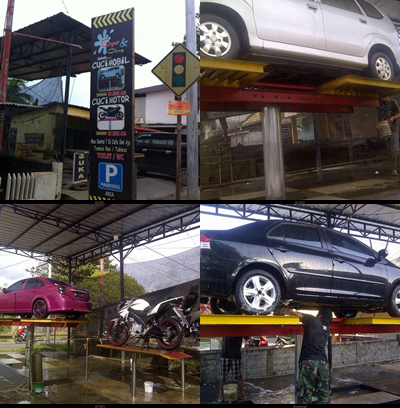 Dengan menggunakan alat sistem hidrolik, memudahkan Byur Cling dalam membersihkan mobil dengan bersih, cepat dan praktis.