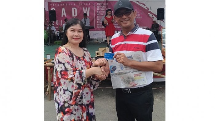 Wakil Wali Kota Singkawang, Irwan menerima Tribun Family Card (TFC) yang diberikan langsung oleh Pemimpin perusahaan Tribun Pontianak, Julia Lorrains