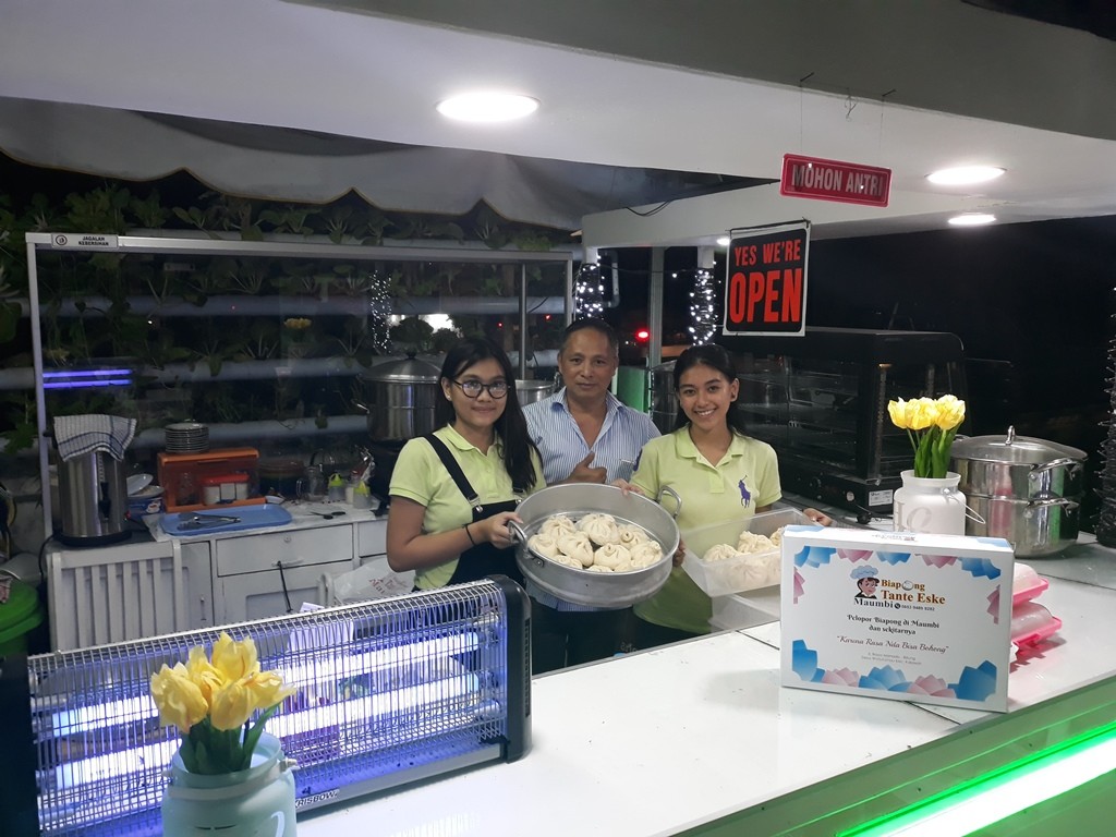 Dua gelas kopi diberikan secara gratis bagi anda pengguna kartu Tribun Family Card (TFC) Premium saat bertransaksi di Biapong Tante Eske Maumbi, Minahasa Utara. Per buah biapong dibanderol Rp 6.000. Ada beragam pilihan rasa, diantaranya ba, temo, ayam, dan kacang. Dengan pengunjung yang cukup ramai, dalam sehari bisa 1.500 biapong terjual. Poldy mengaku akan merenovasi lagi tempat jualnya karena saat ini jumlah produksi masih terbatas, sedangkan pembeli sudah banyak. Ia pun siap bila nanti menambah mesin guna meningkatkan produksi biapongnya. "Sekarang masih manual, nanti kita akan coba pakai mesin terbaru untuk menambah jumlah produksi," bebernya. (nie)