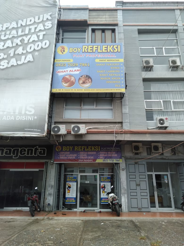 Boy Refleksi Pijat Profesioanal Kebugaran dan Kesehatan yang beralamat di Jalan Mr Mohd Hasan Batoh memberikan diskon 20 % bagi pemilik kartu Tribun Family Card Premium Hr Serambi Indonesia. “ Reflexology adalah ilmu refleksi dari timur yang sering disebut sebagai metode pijat yang bertumpu pada simpul syaraf kaki atau biasa disebut titik sentra refleks. pijat refleksi berfungsi untuk melancarkan peredaran darah dan kebugaran, kami juga melayani proses bekam basah dan kering “ ujar Muhamad Boidawi selaku manager Boy Refleksi.