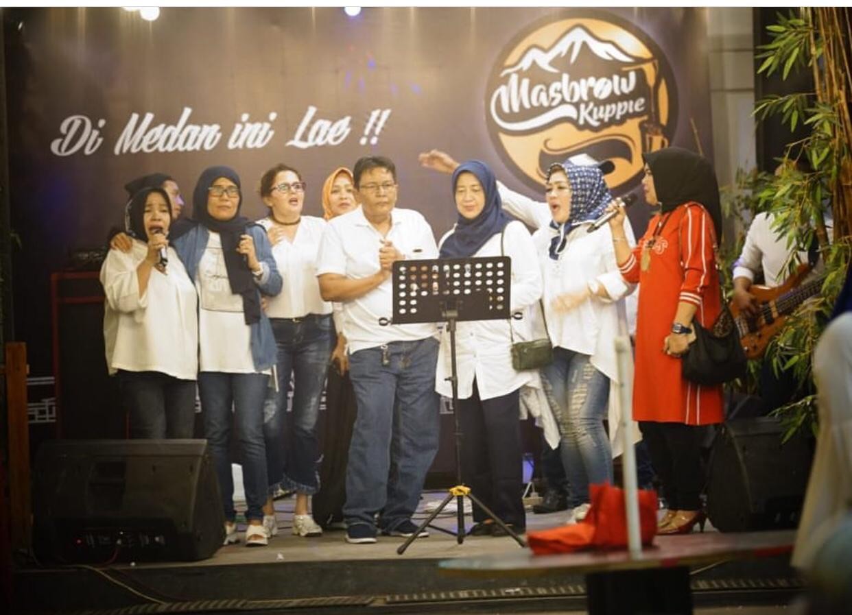 Beberapa pengunjung sedang menikmati hiburan di Masbrow Cafe. Berlokasi di Jalan Asrama No.25A, Dwi Kora, Kec. Medan Helvetia, Kota Medan.