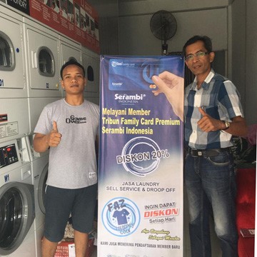 BANDA ACEH - Merchant Tribun Family Card (TFC) Premium kini bertambah lagi dengan hadirnya Faz Coin Laundry yang memberikan diskon 20 persen kepada member TFC. Diskon tersebut diperuntukkan bagi laundry jenis cucian pakaian seharihari baik sistem self service maupun drop of (dikerjakan oleh pihak laundry).