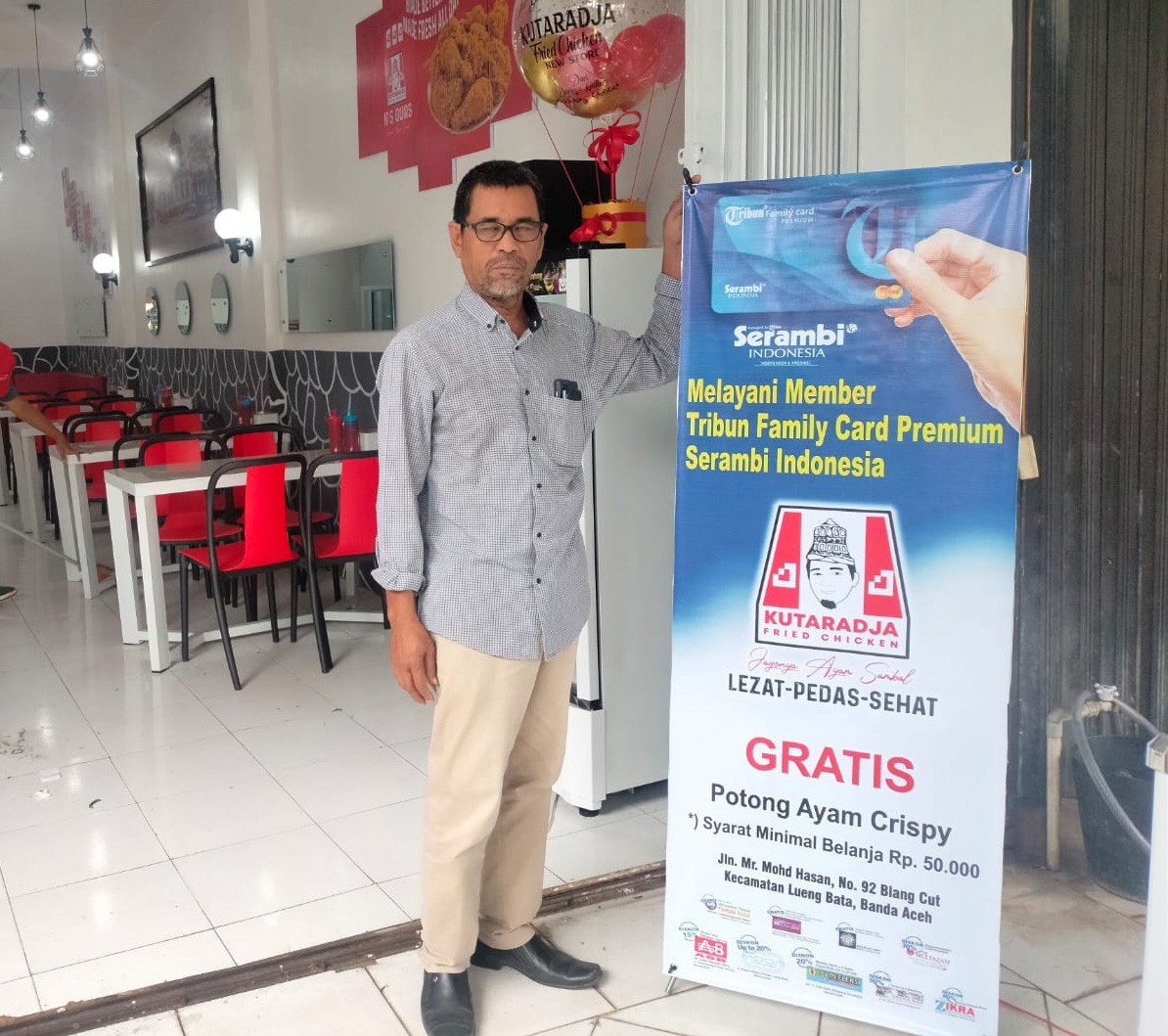PIC Tribun Family Card Serambi Indonesia Syaiful Bahri, menjelasakan, “ Dengan bergabungnya Store Kuta Radja Fried Chicken Cabang Mohd Hasan sebagai Merchant TFC, member berhak untuk mendapatkan satu potong ayam goreng dengan syarat dan ketentuan minimal belanja lima puluh ribu rupiah.(khusus outlet Moh Hasan Blang Cut)